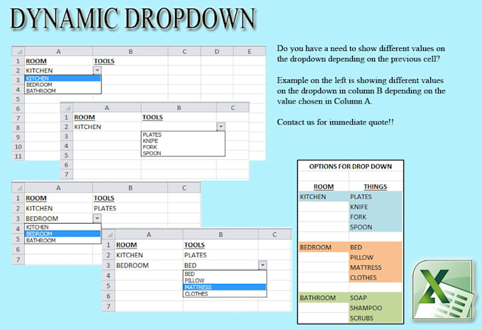 js-gig-main-desc ">Do you have a need to show different values on the drop down menu depended upon the values chosen on previous cell?We can do this for you using Data Validation in Excel
